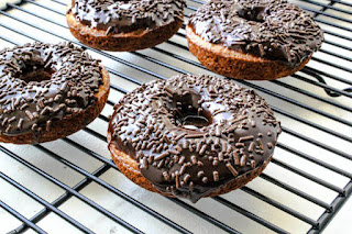 Baked Banana Bread Donuts With Dark Chocolate Glaze